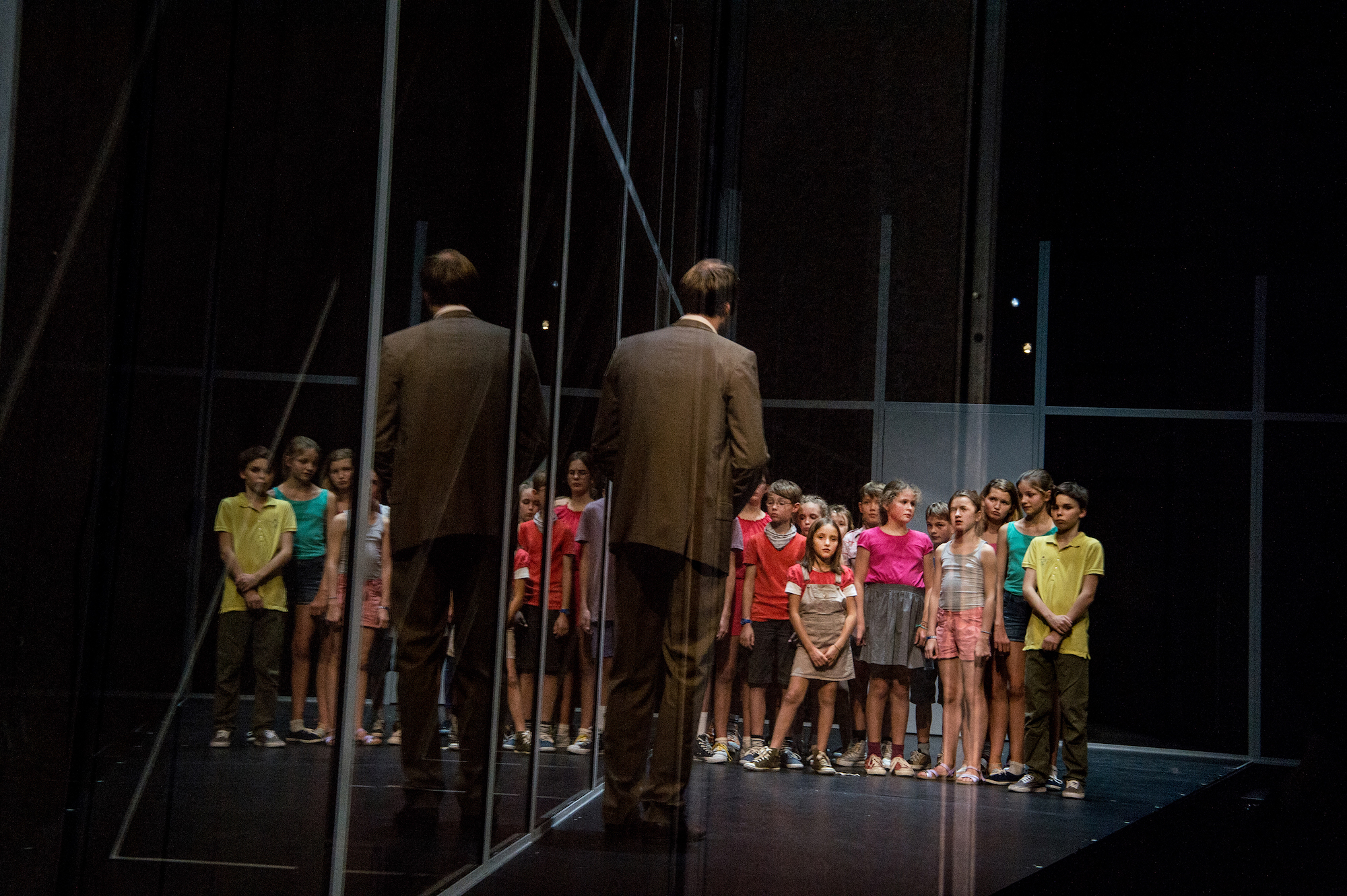 Regisseurin Nora Schlocker hat vor, mit der Dramatisierung der Geschichte um den demissionierten Kommissär Matthäi, der sich mit der Suche nach dem richtigen Kindsmörder um den Verstand bringt, zu berühren. Hierfür stellt sie quasi als Gefühlsbeschleuniger eine Kinderschar auf die Bühne (Kinder aus der Mädchen- und Knabenkantorei), die wie ein antiker Chor das Geschehen beobachtet und wortlos besingt.