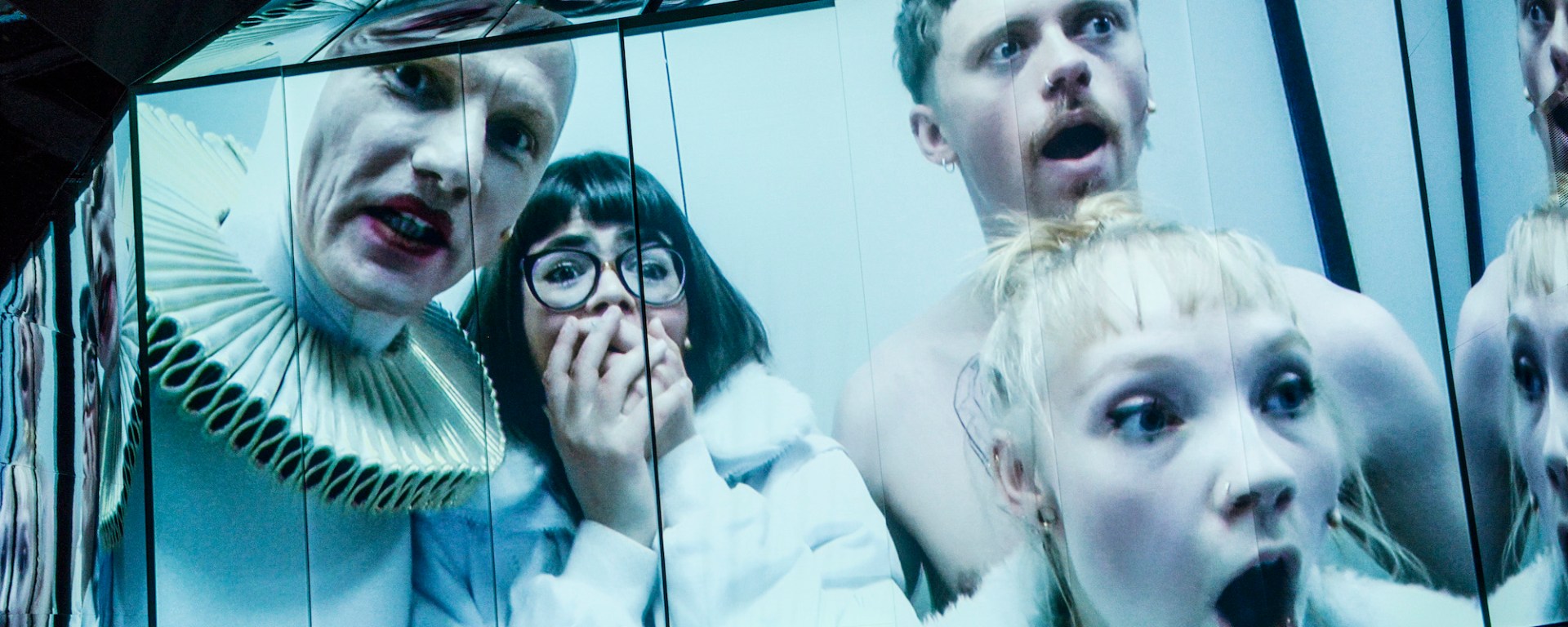 Dem Trio stehen drei Ensemblemitglieder des Schauspielhauses Zürich zur Seite. Sie begleiten dieses nach dem Intro auf dem Catwalk in eine geheimnisvolle surreale Welt auf der Hinterbühne. Hier hat Ausstatter Dominic Huber eine albtraumhafte Parallelwelt der Modeindustrie aufgebaut, durch die das Trio gehetzt wird.