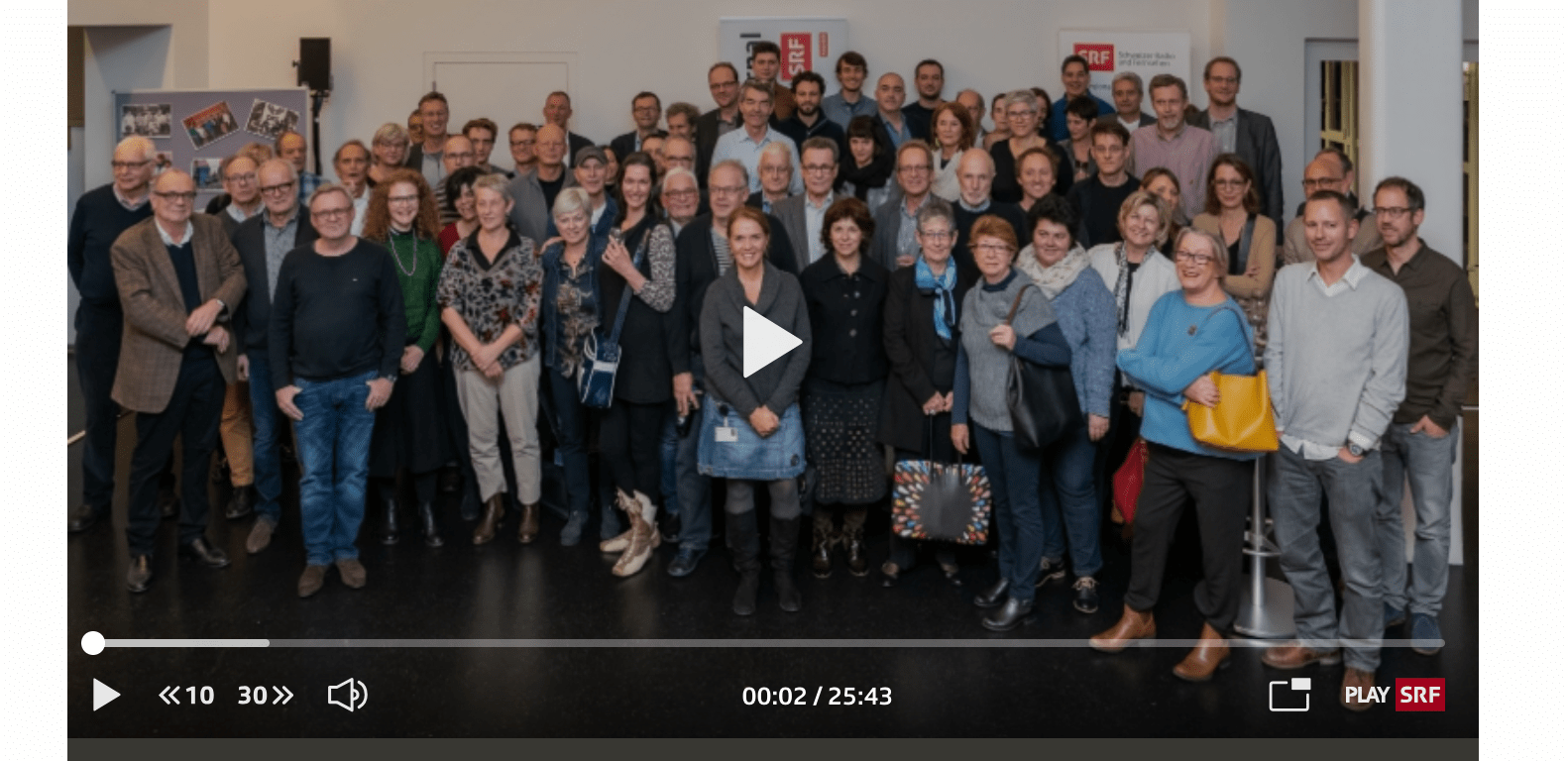 Dieter Kohler, aktueller Chefredaktor des Geburtstagskindes, begrüsst die vielen Gäste – zwei Drittel davon reihen sich später zum grossen Familiengruppenbild der Ehemaligen ein. Und er bittet um etwas akustische Zurückhaltung während der bevorstehenden Livesendung zum Geburtstag. Währenddessen zwängen sich einige SRF2-Mitarbeiter durch die Menge der geladenen Jubiläumsgäste hinaus auf den Heimweg.