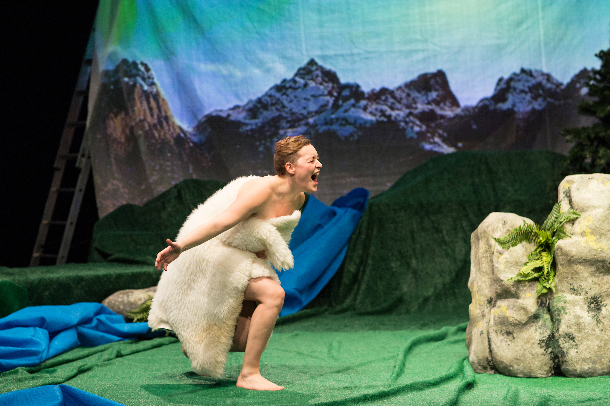 Es beginnt mit etwas Evolution: Zwei Fellknäuel robben grunzend über den leeren Bühnenboden. Damals, also ganz ganz lange vor unserer Zeit, war das mit dem Klima noch okay. Also mehr oder weniger, da gab es ja auch die Katastrophe, die den Dinosauriern den Garaus gemacht hatte.