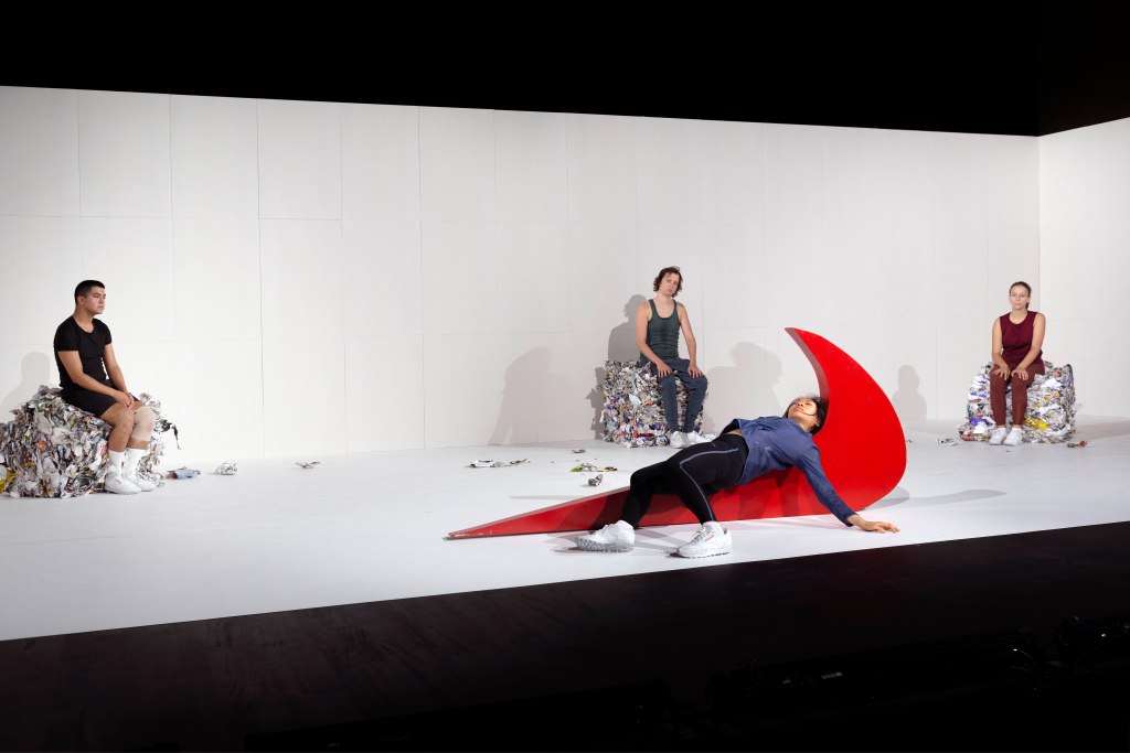 Was sie damit letztlich bezwecken, wird auf der Bühne nicht wirklich nachvollziehbar. «Vier Performer*innen eignen sich Nikes Strategien auf der Bühne an. Sie stellen Protestbilder des letzten Jahrhunderts nach, branden sie als Nike Werbung und erforschen so, wie dehnbar das Gewebe Werbung-Marke-Politik ist», heisst es im Beschrieb der Produktion von Maximilian Hanisch und Sarah Methner. Die Forschung verliert sich aber trotz präziser Choreografie in einer letztlich ermüdenden Aneinanderreihung von Posen.