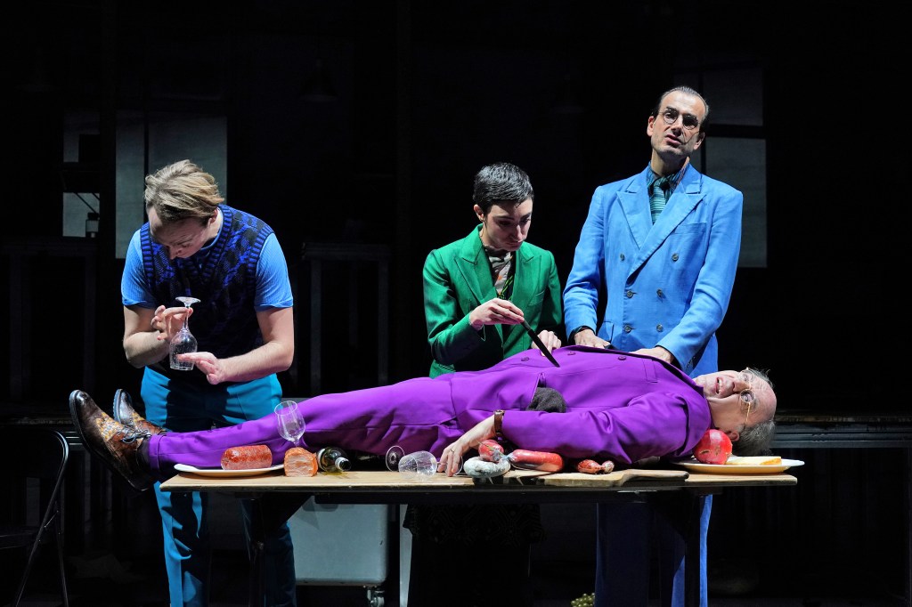 Aber dieser Schluss kommt einem viel zu kurz vor, was zuvor nicht immer der Fall war. Das liegt nicht am am Ensemble mit Andrea Bettini als Ulysses/Leopold Bloom, Fabian Dämmich als (hauptsächlich) Stephen Dedalus, Nairi Hadodo als vielerlei Erscheinungen und Fabian Krüber als Joyce und mehr – die sind hervorragend spielerisch konzentriert auf den Abend eingestellt. Das liegt daran, dass nach vielen vielen Minuten mit Sprüngen, harten Brüchen und dem Original geschuldeten (und zum Teil ja auch originell übernommenen) stilistischen Volten endlich konzentrierte Ruhe einkehrt.