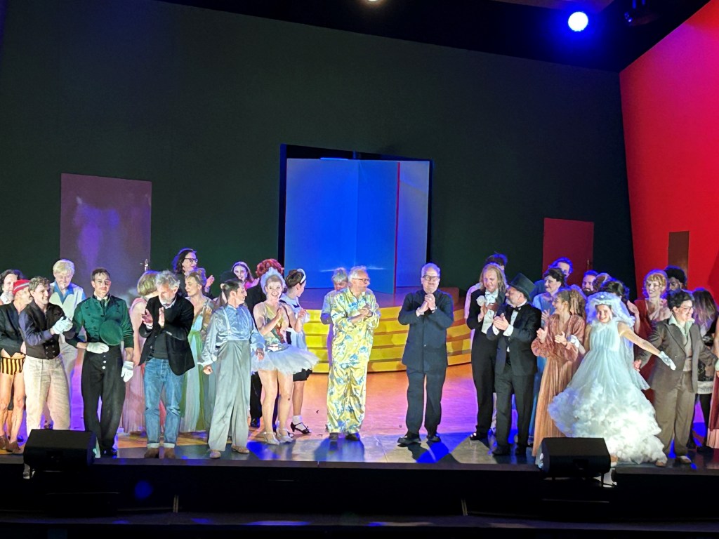 Der Theaterabend – das Theater preist ihn als Oper an – lebt von der slapstickartigen Situationskomik. Das ist die Kernkompetenz von Regisseur Herbert Fritsch, der hier auf ein famoses und akrobatisch aufspielendes Ensemble zurückgreifen kann – allen voran mit einem grandiosen Christopher Nell als Hauptfigur Fadinard, mit einem Bewegungsartisten Florian Anderer als verliebter Polizist und der abgründig lasziven Hutmacherin Clara (Sarah Bauerett).