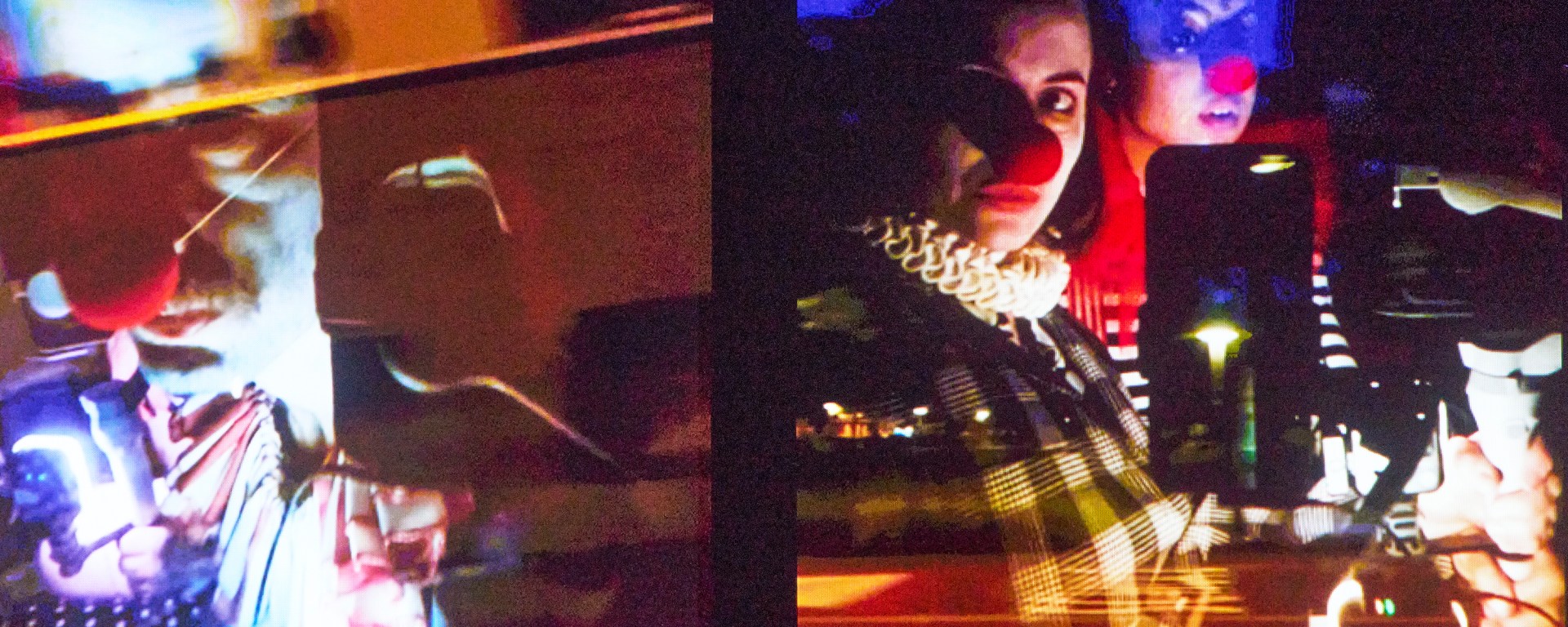 Es beginnt mit einem forciert ironisierten Lobgesang auf die unwirtliche und durchorganisierte Stadt: auf die unwirtlichen Rasenflächen auf die glatten Strassen, auf die Verkehrsampeln. Das ist ganz witzig, löst sich aber dann auf, wenn die sechs im Clownoutfit herumhetzenden Menschen ihre eigenen Wege gehen und in einer Eskalations-Spirale über das eigene Schicksal zu hadern beginnen.